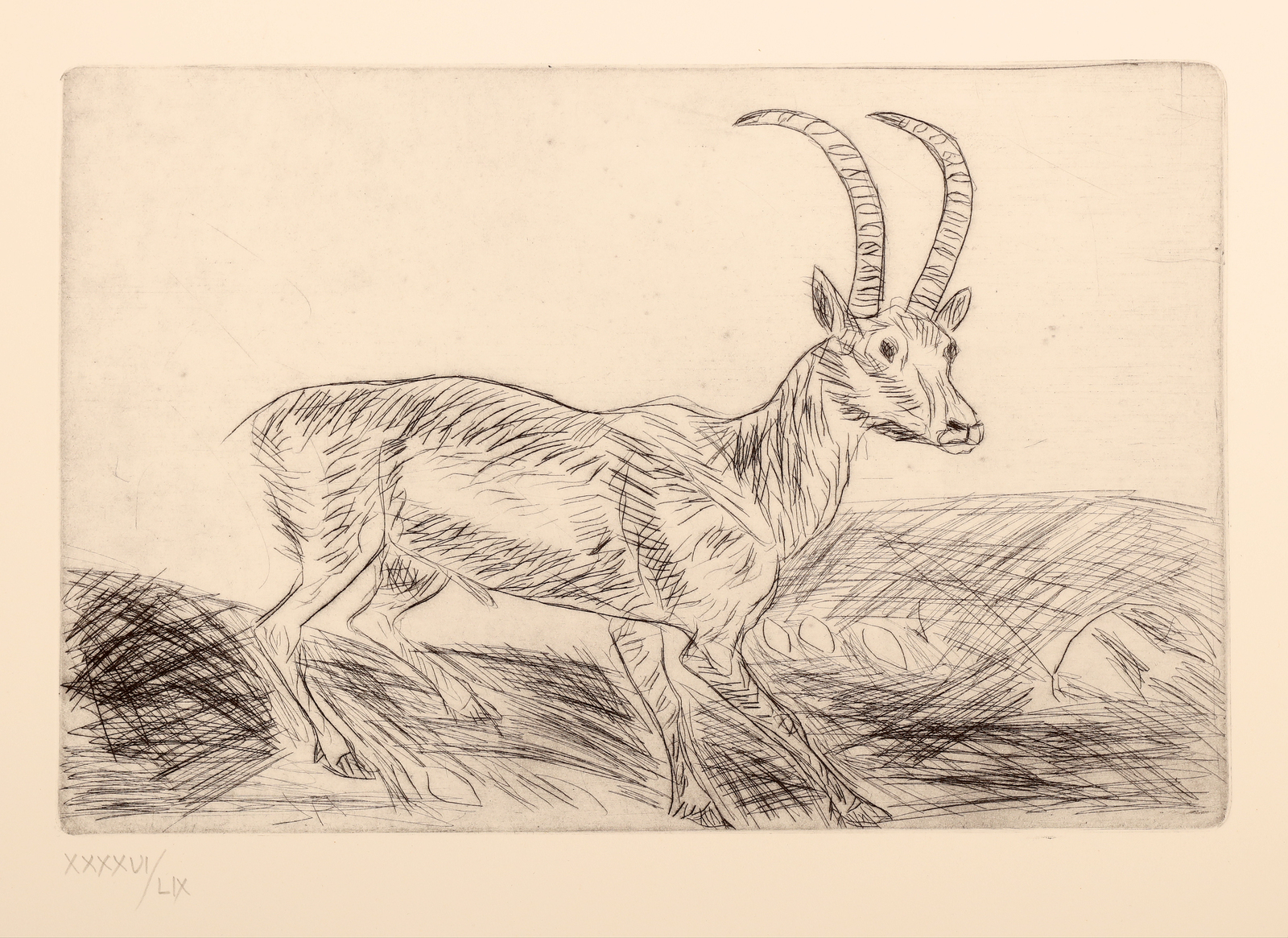LIGABUE ANTONIO (1899 - 1965) Untitled. Etching. Cm 70,00 x 50,00. XXXXVI/LIX. Edition and Casa d'Arte Sergio Negri, Guastalla stamp lower left. At the back Casa d'Arte Sergio Negri, Guastalla stamp. Plate size: 22 x 32 cm.