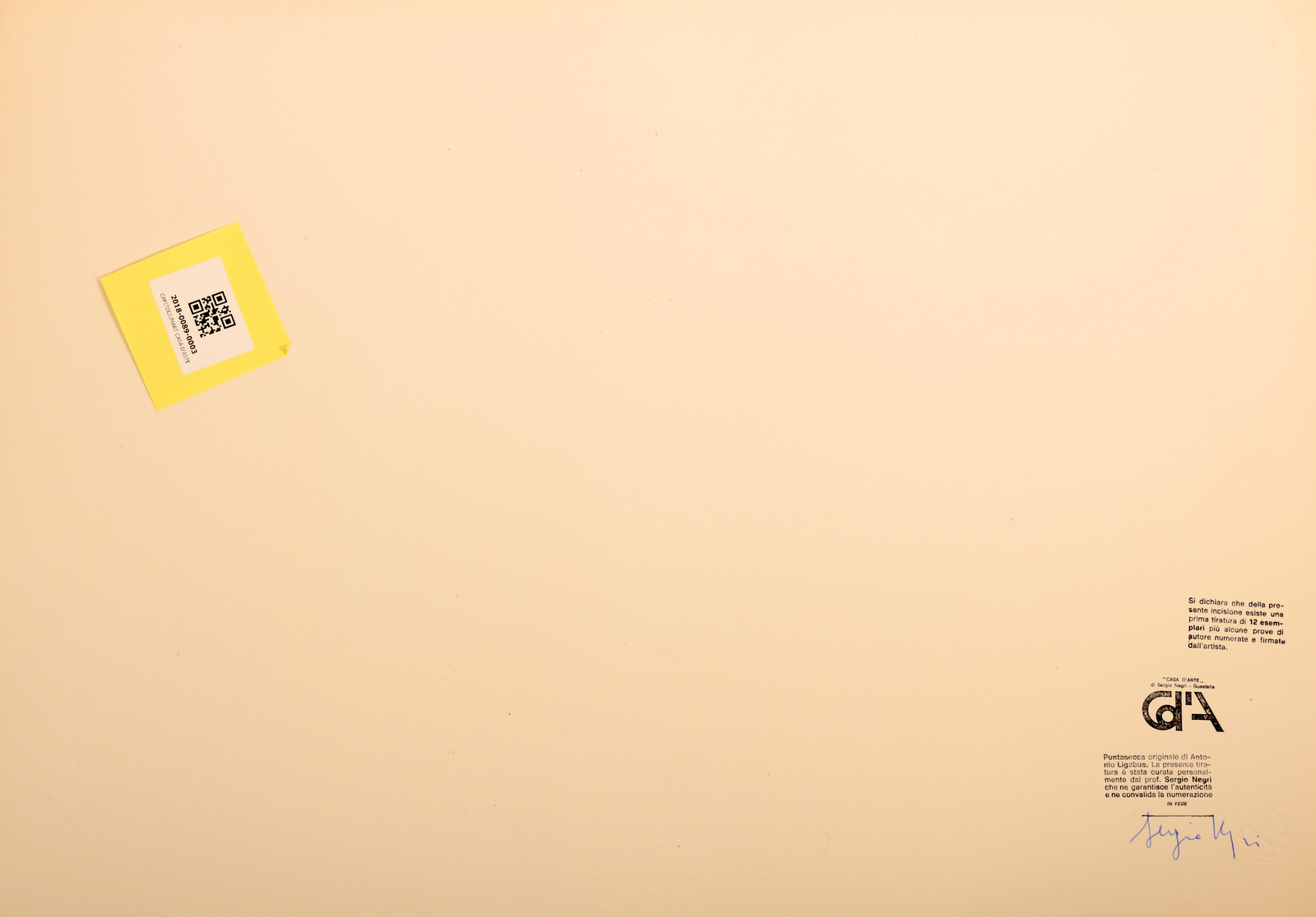 LIGABUE ANTONIO (1899 - 1965) Senza titolo. Acquaforte. Cm 70,00 x 50,00. XXXXVI/LIX. Tiratura a matita e timbro a secco Casa d'Arte Sergio Negri, Guastalla in basso a sinistra. Al retro timbro di garanzia Casa d'Arte Sergio Negri, Guastalla. Dimensione lastra: 22 x 32 cm.