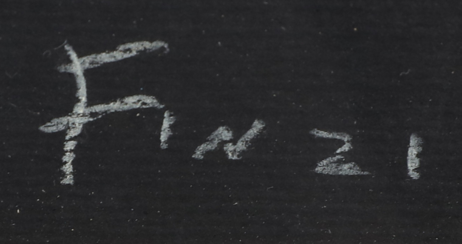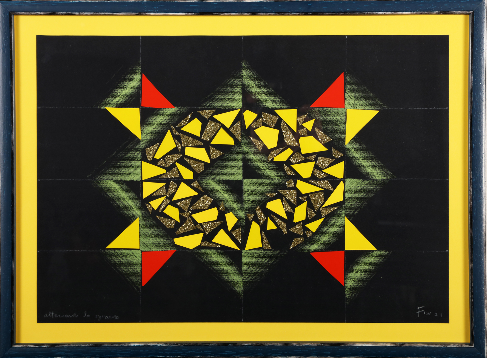 FINZI ENNIO (n. 1931) Alternating look. Mixed media on card. Cm 50,00 x 35,00. Title lowerleft, signature lower right. Artist's authenticity certificate on photo. Cornice presente