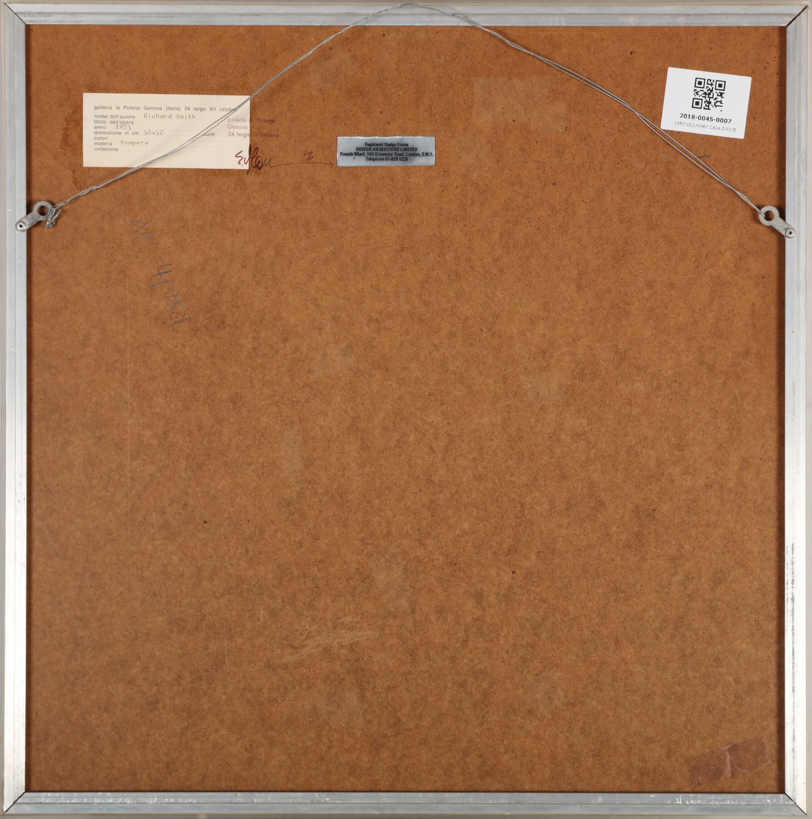SMITH RICHARD (1931 - 2016) Untitled. Mixed media on card. Cm 50,00 x 50,00. Signature lower left. At the back La Polena, Genoa label with stamp. Cornice presente