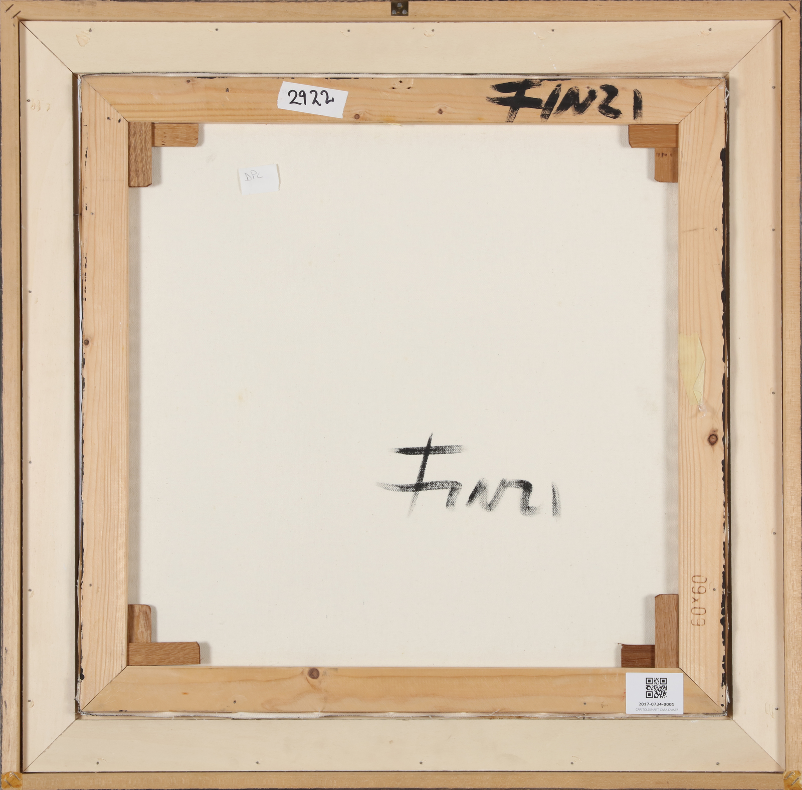 FINZI ENNIO (n. 1931) Senza titolo. Olio su tela . Cm 60,00 x 60,00. Firma al retro. Cornice presente