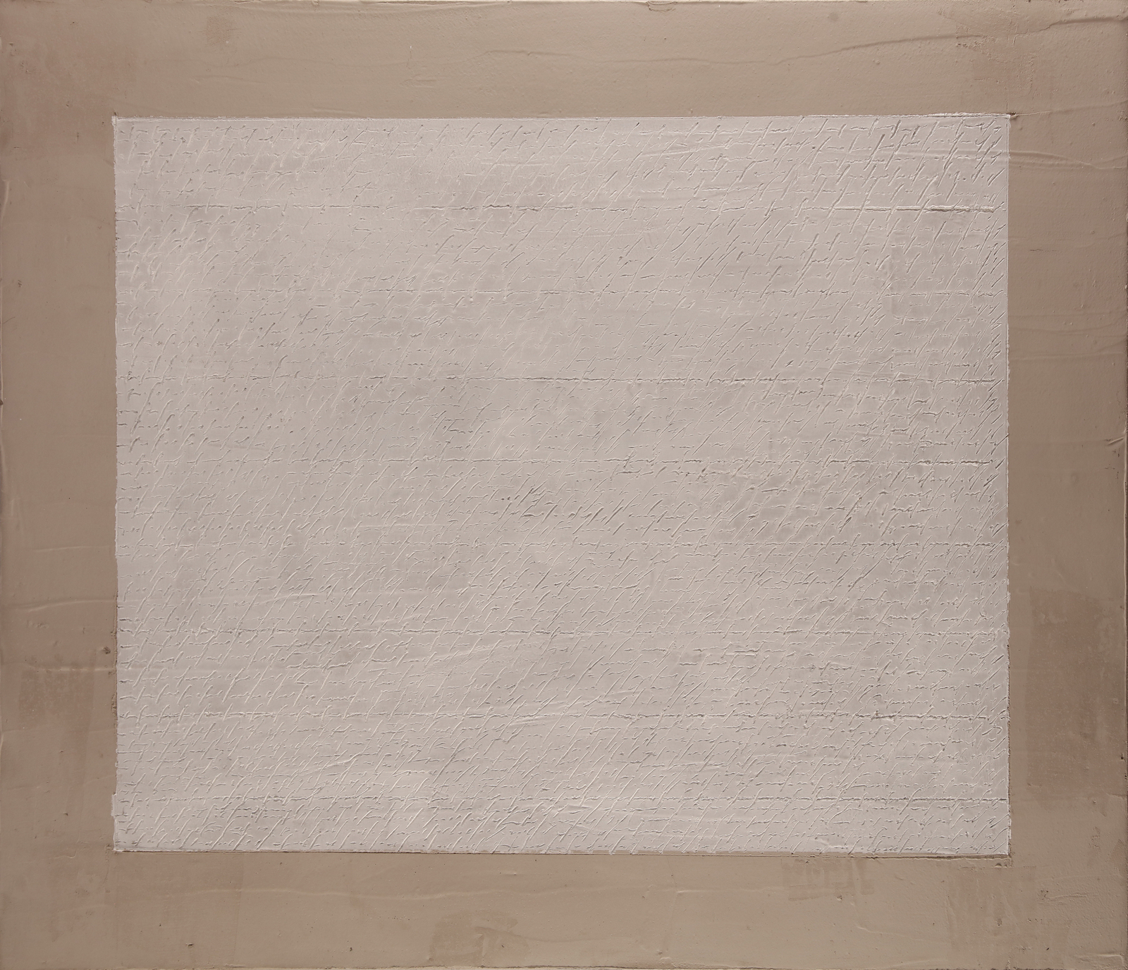 RAPETTI ALFREDO (n. 1961) Cemento con bordo bianco. 2008. Tecnica mista su tela. Cm 135,00 x 115,00. Al retro firma, titolo e anno. Autentica dell'artista su fotografia. Cornice presente