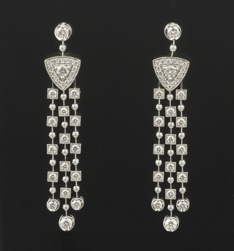 Orecchini con 3 elementi oscillanti ricoperti da diamanti