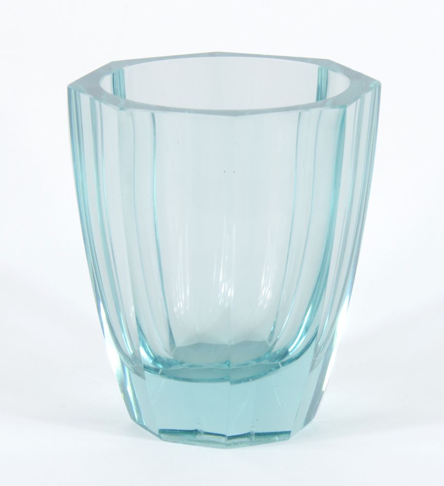 Wiener Werkstatte: vaso in vetro trasparente verde a sezione ottagonale....