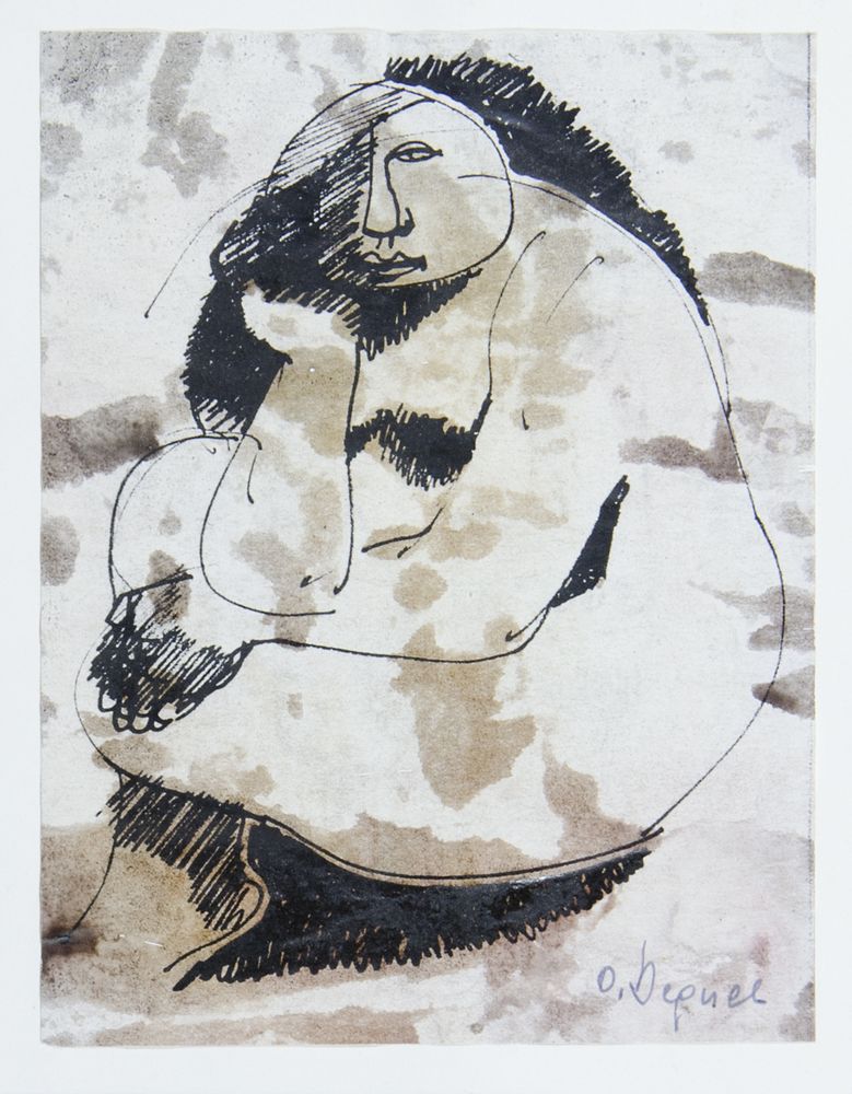 Oreste Dequel Capodistria 1923-Roma 1985 "Personaggio" cm. 19x14 - tecnica mista su carta Firmato b. a d.