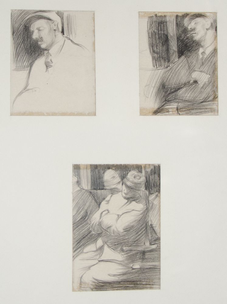 Carlo Sbisà Trieste 1899-1964 Lotto di 3 disegni entro unico passepartout raffiguranti bozzetti di figure maschili.