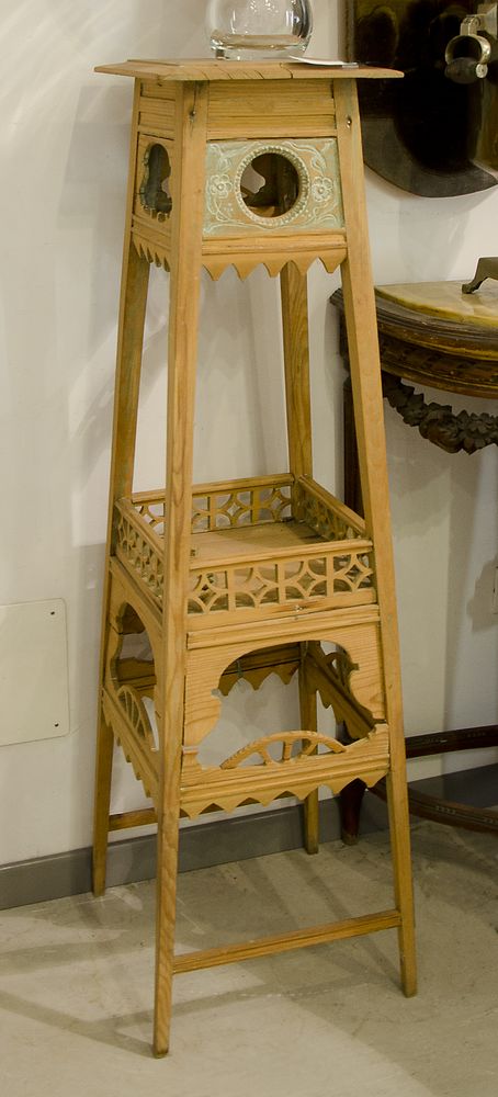 Colonna in legno chiaro intagliata. H. cm. 130.