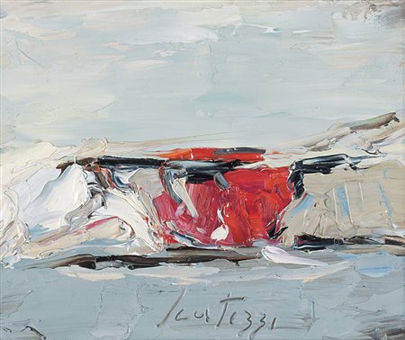 SERGIO SCATIZZI Gragnano (Lu) 20/12/1918 - Firenze 02/12/2009 - La macchia rossa, anni 2000, olio su tavola cm. 23x28, firma in basso al centro, dichiarazione d'autenticità dell'artista e archivio a cura della Galleria il Fiore (Montecatini) su foto.