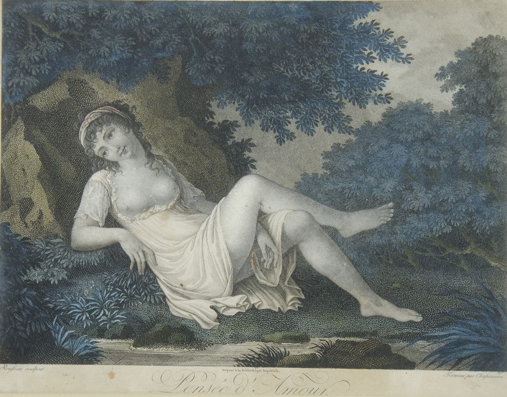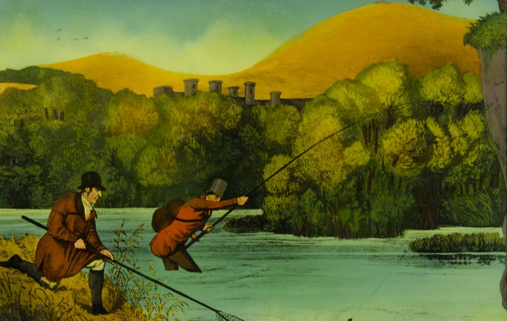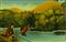 Lotto di 2 opere: dipinto naif e incisione a colori.
