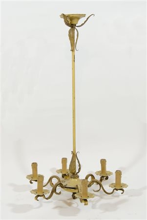 Lot 364 | Lampadario in ferro dorato a 6 luci. H. cm. 85.