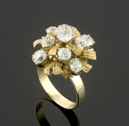 Lot 416 | Anello in oro rosa 14 kt con sommità a fiore con 9 diamanti taglio antico per...