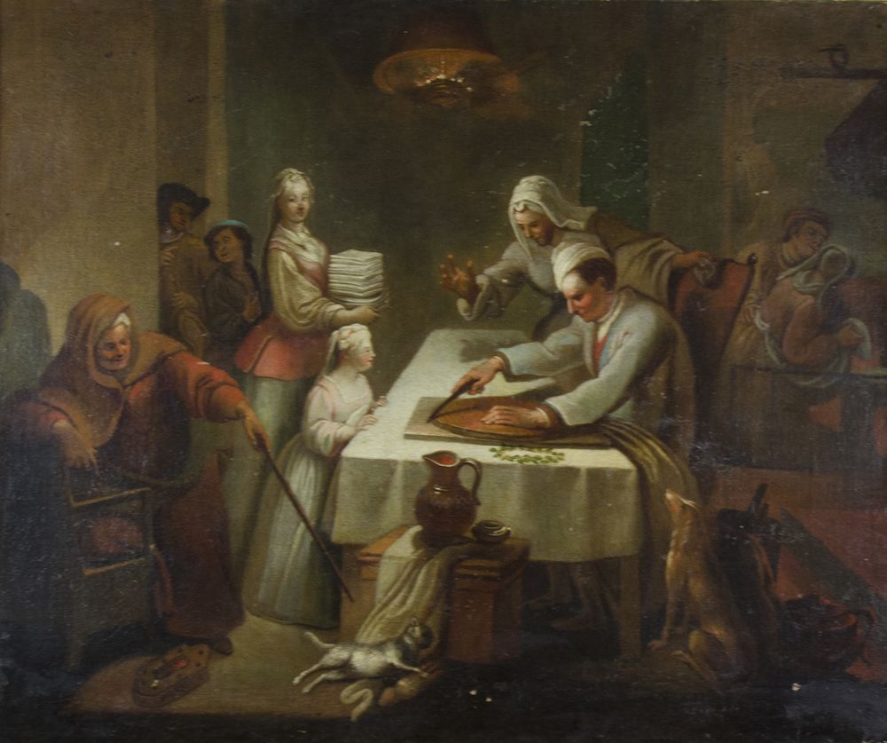 Ambito di Marco Marcola 1740-1793 "Scena con personaggi" cm. 75x90 - olio su tela foderata