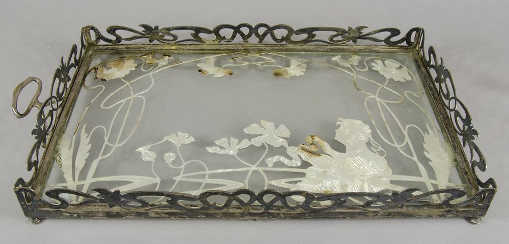 Lot 545 | Vassoio rettangolare in metallo argentato, interno in vetro. Cm. 28x45....