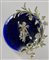 Piatto in ceramica blu con applicazioni floreali in metallo. Diam. Cm. 35.