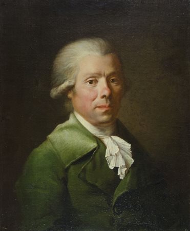 Maestro fine XVIII secolo Lotto di 2 oli su tela foderata cm. 65x53: a) "Gentildonna" b) "Gentiluomo"