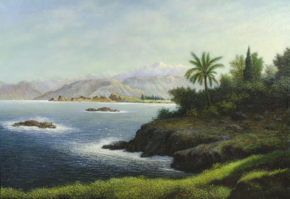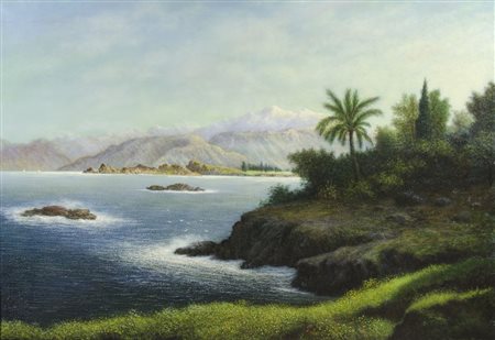 Guglielmo Stracca Gradisca 1899-Trieste 1979 "Paesaggio fantastico" cm. 90x130 - olio su tela Firmato b. a d.