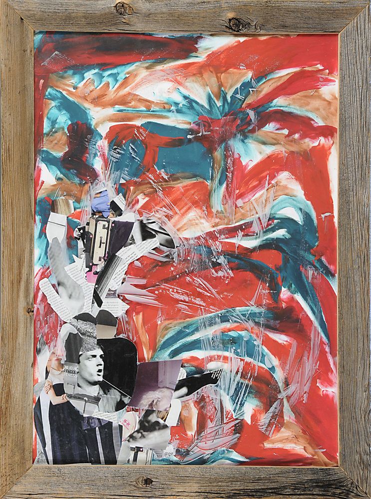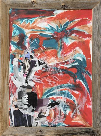 Jacopo Desogus Iglesias 1984 "Jan Curtis" cm. 70x50 - olio su cartone, collage su vetro e assemblaggio delle 2 composizioni con cornice in vecchi legni montani.