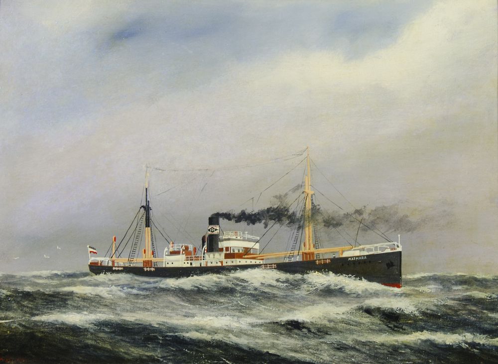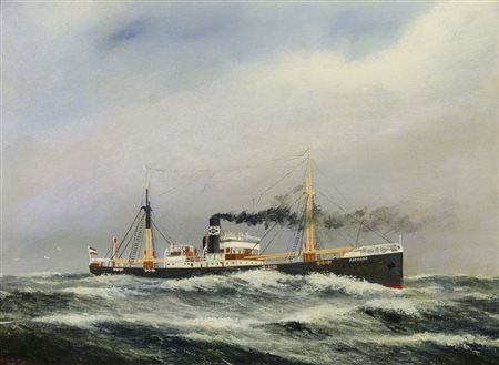 Richter (?) "Motonave Marmara" Cm. 35x48 - olio su cartone Firmato b. a d.