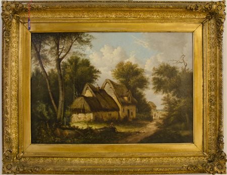 Maestro del XIX secolo "Paesaggio con case e alberi" cm. 41x61 - olio su tela