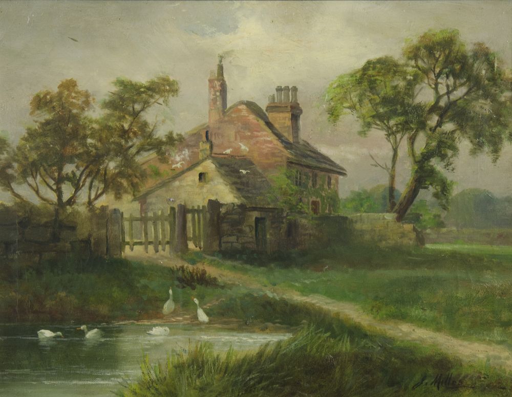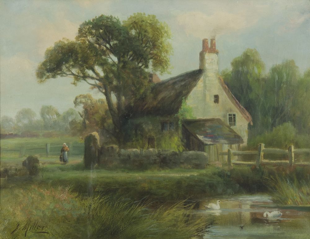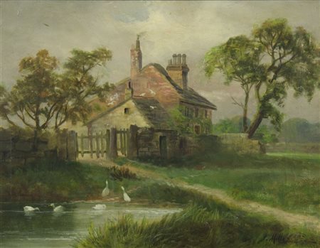 Pittore primi '900 Lotto di 2 oli raffiguranti paesaggi, entro cornici dorate.