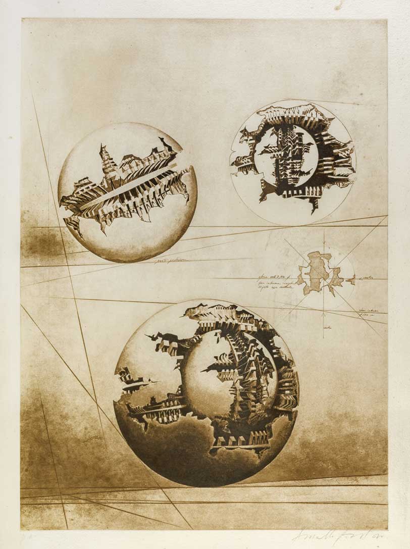 ARNALDO POMODORO (1926) Senza titolo Acquatinta, es. p.a. 78 x 56 cm 106 x...