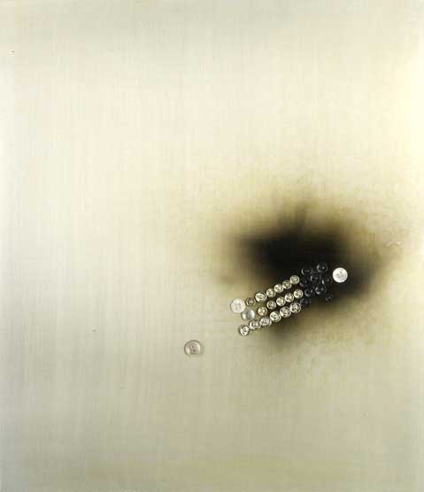 Tecnica mista su lastra metallica applicata su faesite