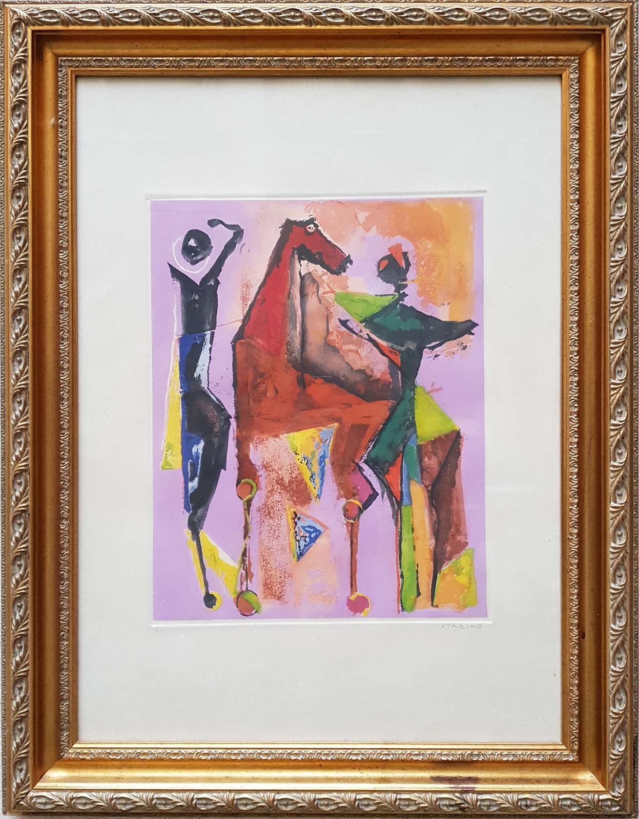 MARINI MARINO (1901 - 1980) Marino from Shakespeare (plate III, 25 colori). Acquaforte, acquatinta e puntasecca. Cm 57,00 x 76,50. 1977/78. Dimensioni lastra: cm 47,7x38. Edizione: 75+L+p.a.; esemplare: p.a. Da una cartella di 8 fogli stampata da Labyrinth edizioni, Londra. Cartolina e colophon originali.