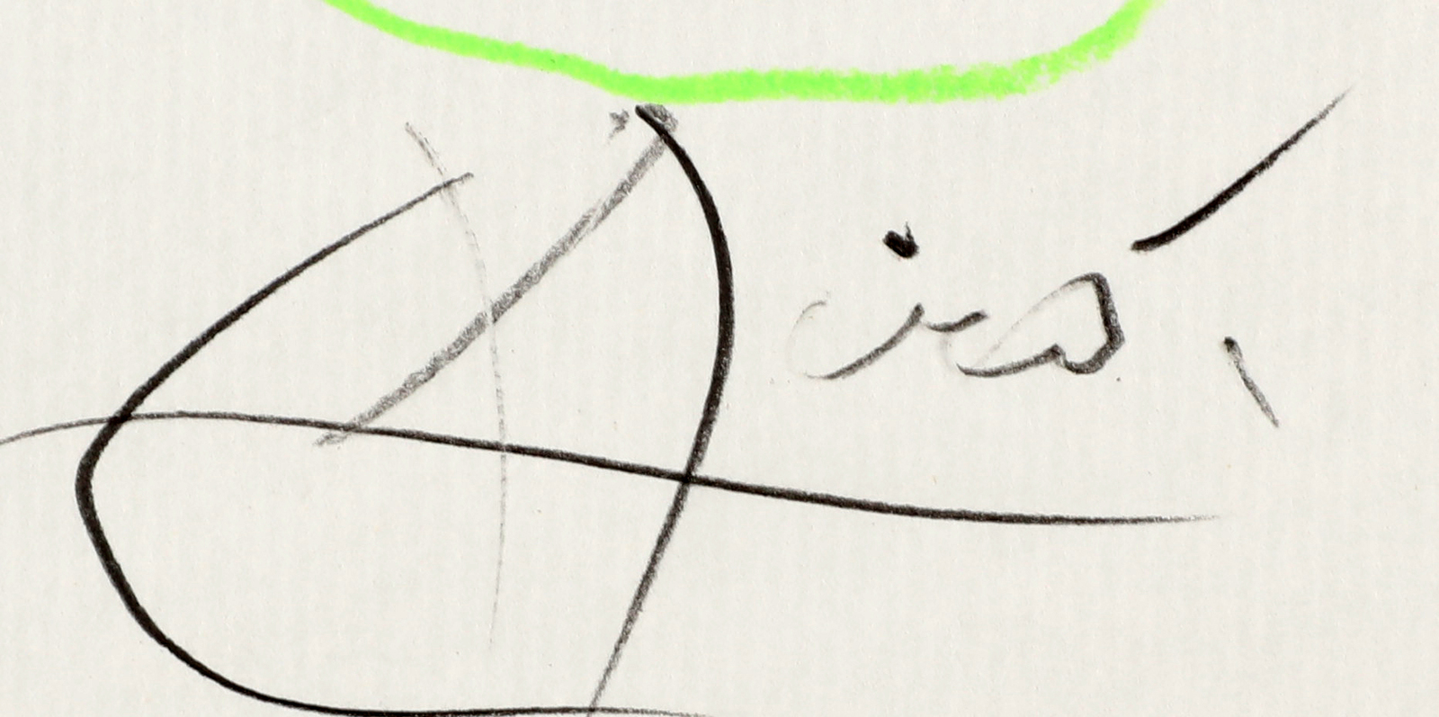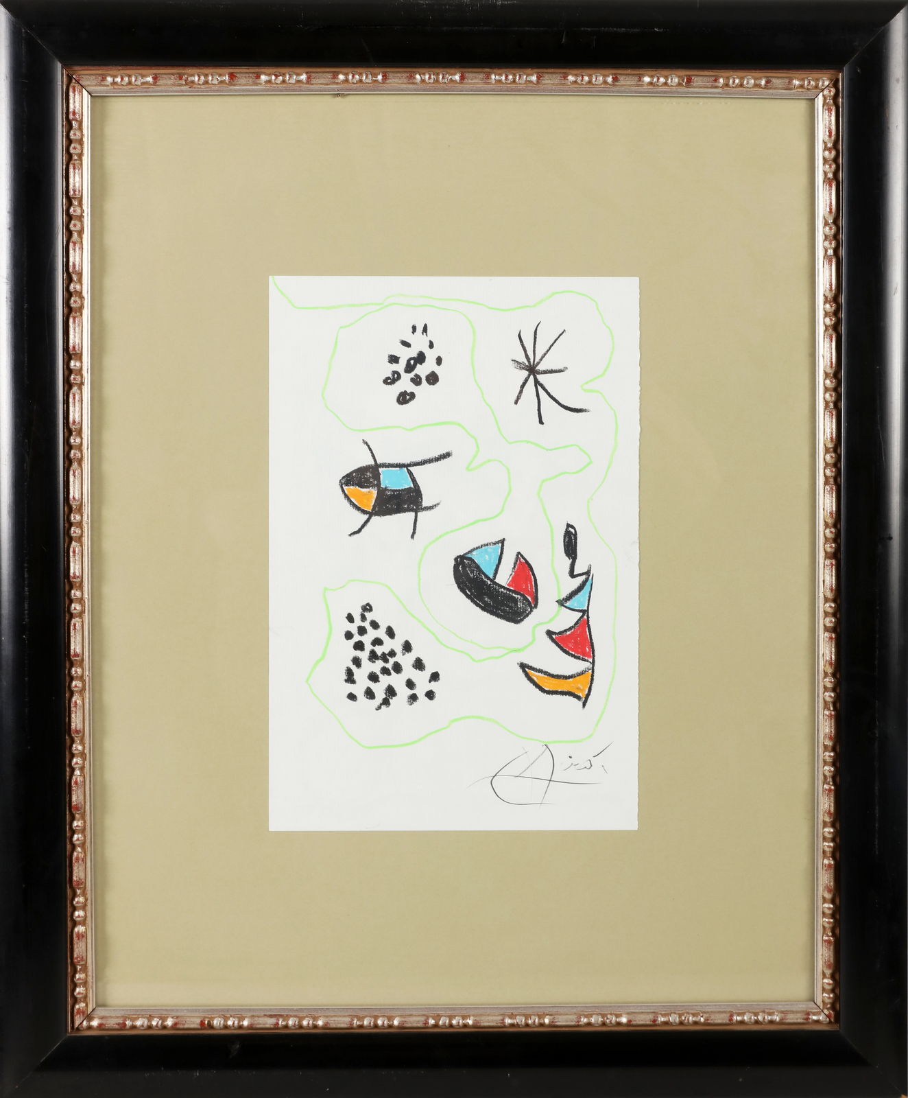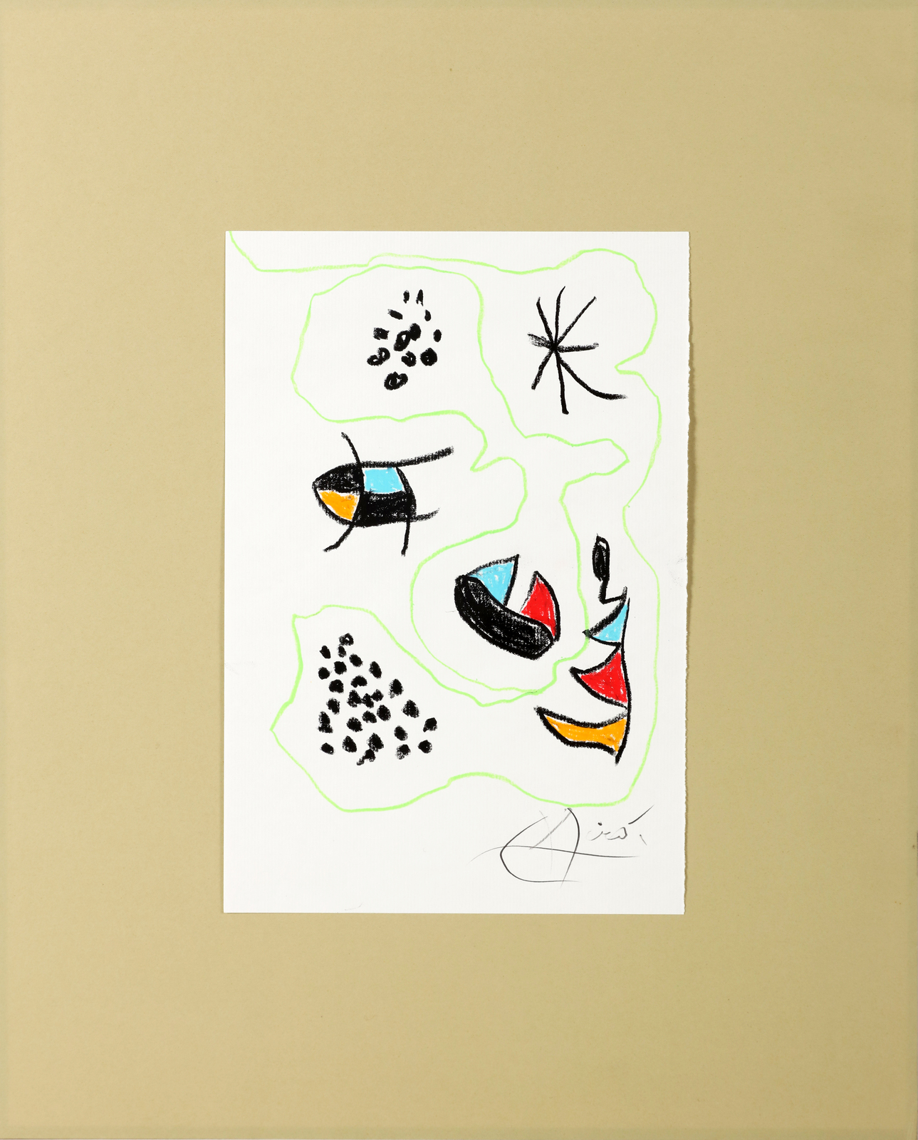 MIRO' JOAN (1893 - 1983) Untitled. Mixed media on paper. Cm 20,00 x 30,00. Signature lower right. Sala Gaspar Gallery, Barcelona authenticty certificate on photo. Cornice presente