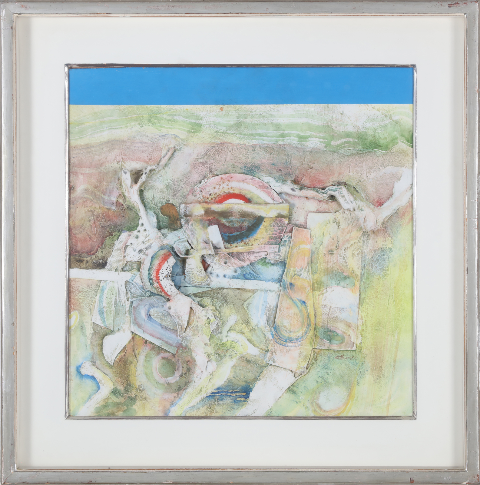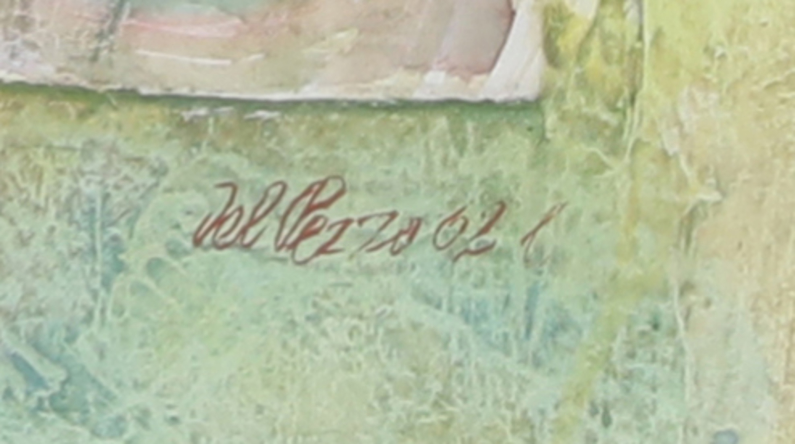 DEL PEZZO LUCIO (n. 1933) Untitled. 1962. Mixed nomes on board. Cm 48,00 x 48,00. Signature and year lower right. At the back Marconi Study, Milan label. Cornice presente