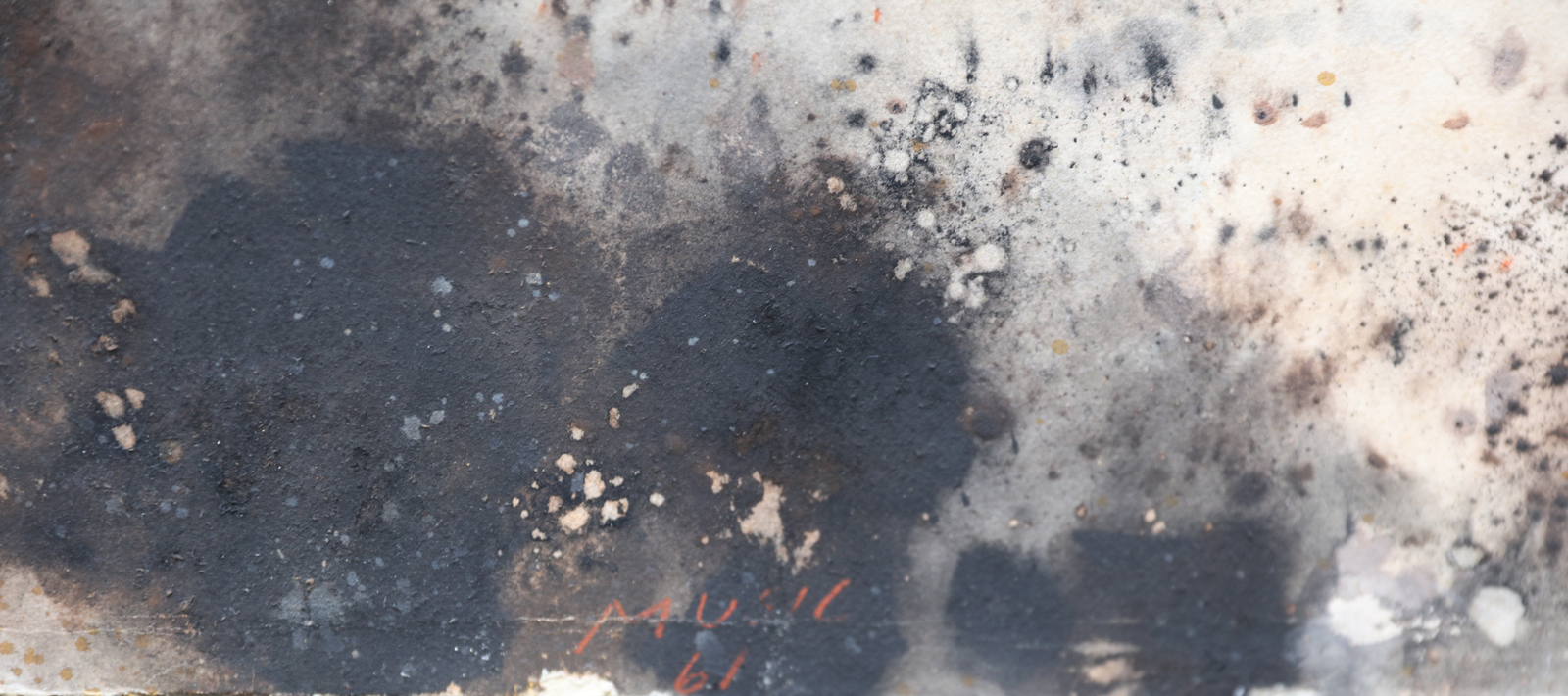 MUSIC ANTONI ZORAN (1909 - 2005) Paysage vide. 1961. Tecnica mista su carta incollata su tela. Cm 65,00 x 50,00. Firma e anno in basso al centro. Opera archiviata presso l'Archivio della Galleria d'Arte Contini, Venezia, come da documentazione fotografica allegata all'opera riportante il relativo numero d'inventario. Cornice presente