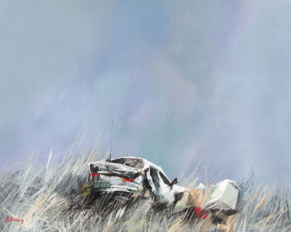 MAURIZIO DELVECCHIO Basilea (Svizzera) 22/05/1962 Solitudine, 1991 acrilico su tela cm. 80x100, firma e anno in basso a sinistra, titolo, firma, anno e tecnica al retro, dichiarazione d'autenticità dell'artista su foto.