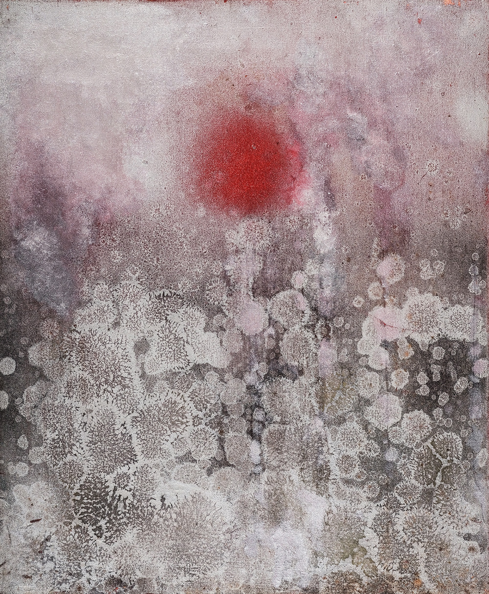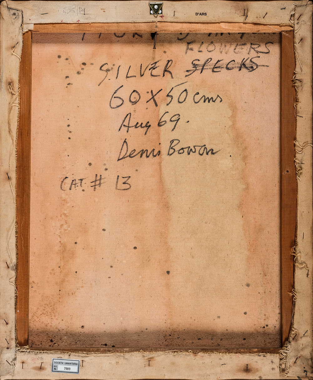 DENIS BOWEN 1921 - 2006 Silver flower, 1969 Tecnica mista su tela, cm. 60 x 50 Firmato e datato sul retro Timbro D’Ars, Milano sul retro Prov. Collezione Privata