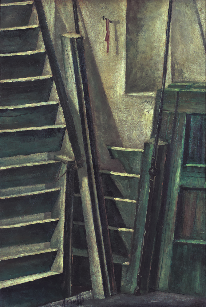 MARCELLO SCUFFI Tizzana (Pt) 1948 Persiane rotte, 1978 olio su tela cm. 90x60, firma in basso a sinistra, firma, titolo, anno, etichetta della Galleria Spagnoli e della Galleria Orler al retro, dichiarazione d'autenticità dell'artista e archivio su foto, pubblicato sul catalogo della mostra Marcello Scuffi, tenutasi presso la Galleria Spagnoli nel febbraio/marzo 1982, pagina 21, pubblicato sul catalogo della mostra Marcello Scuffi "La memoria delle cose", Tèchne Editore, tenutasi presso la Galleria Orler, pagina 206.