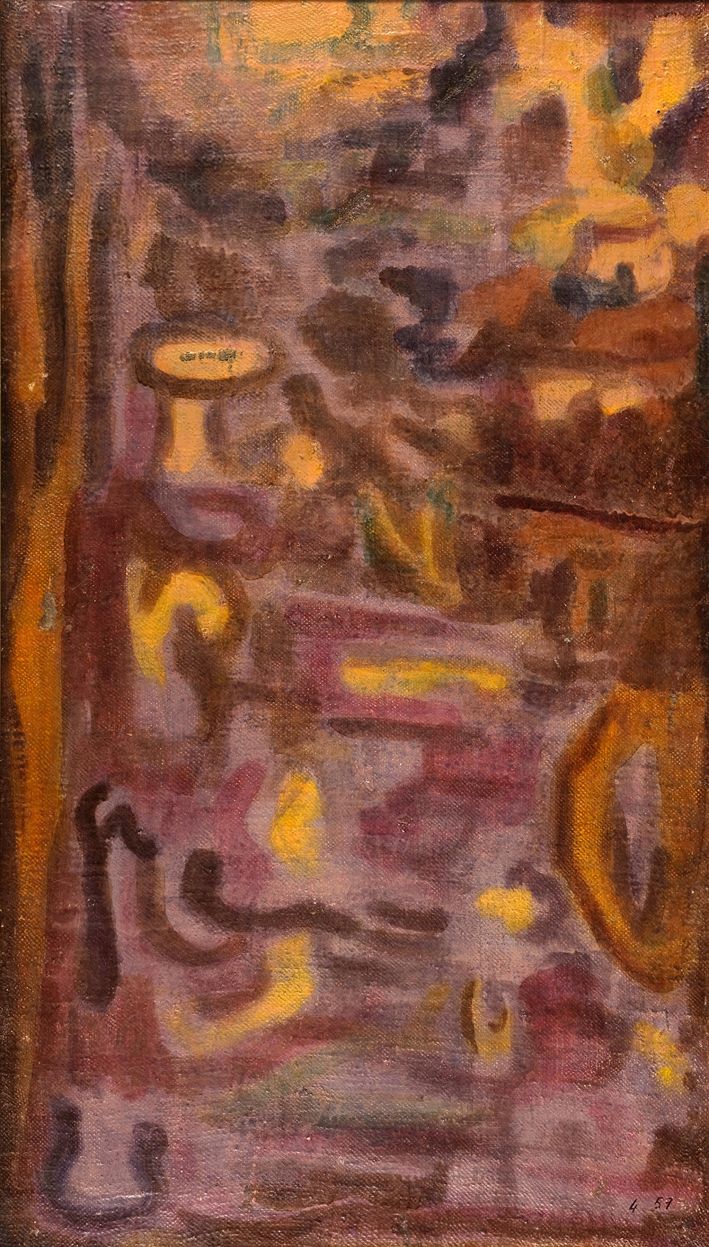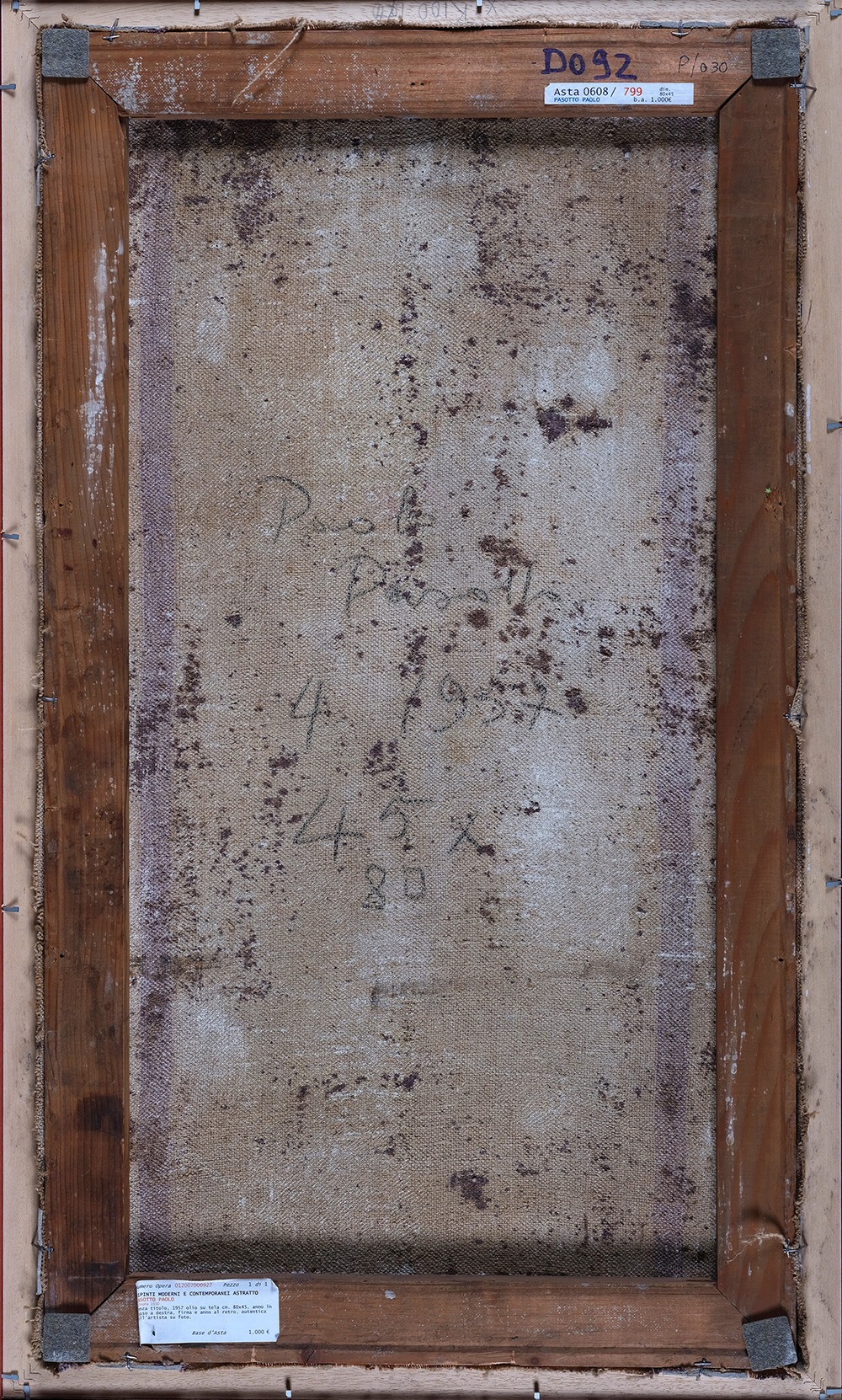 PAOLO PASOTTO 1930 - 2015 Senza titolo, 1957 Olio su tela, cm. 80 x 45,5 Firmato e datato sul retro Etichetta Meeting Art, Vercelli sul retro Autentica dell’artista su fotografia Certificato di Provenienza Meeting Art, Vercelli Prov. Collezione Privata