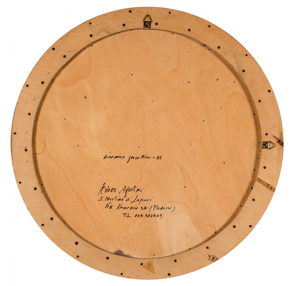 EDOER AGOSTINI 1923 - 1986 Dinamica percettiva, 1981 Acrilico su tela tamburata, diametro cm. 58 Firmato e datato sul retro Prov. Collezione Privata