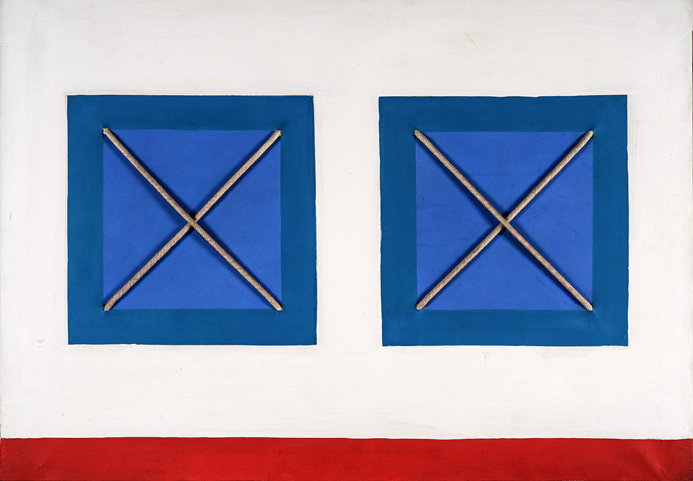 JACK CLEMENTE 1926 - 1976 Souvenir 27, 1966 Olio e corde su tela, cm. 70 x 100 Firmato e datato sul retro Prov. Collezione Privata
