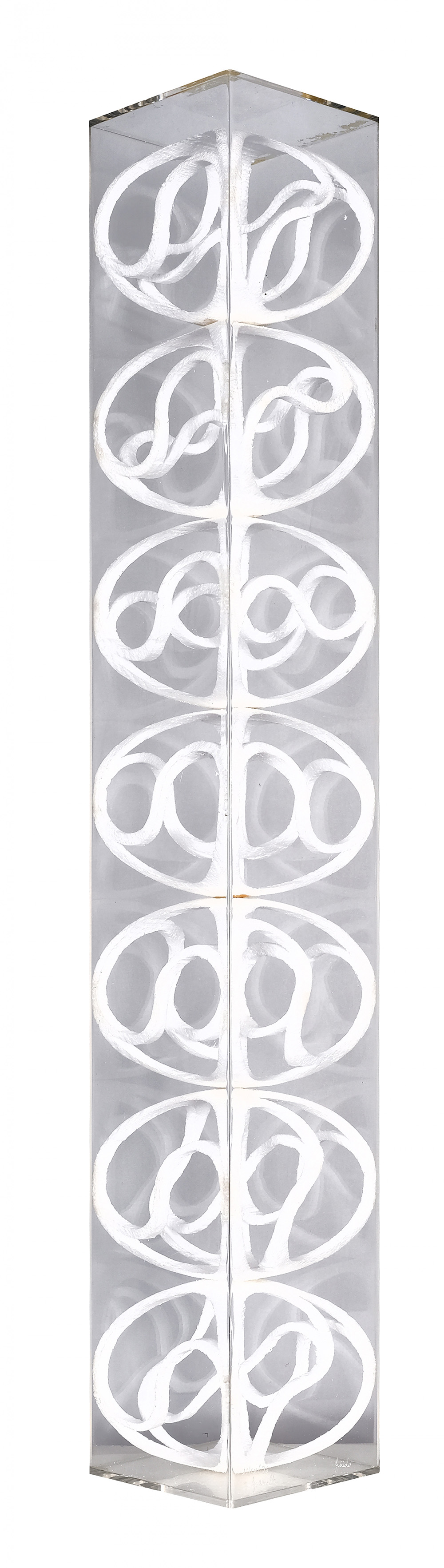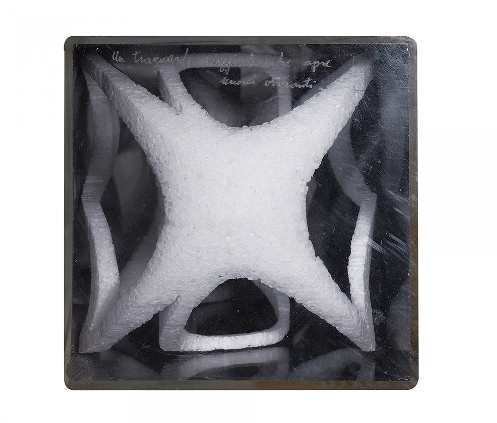 GUIDO MORETTI 1947 Un traguardo raggiunto che apre nuovi orizzonti, 1996 Scultura in polistirolo e box in plexiglass, cm. 80,5 x 12 x 12 Firmato e datato in basso Dedica dell’artista sulla base Prov. Collezione Privata