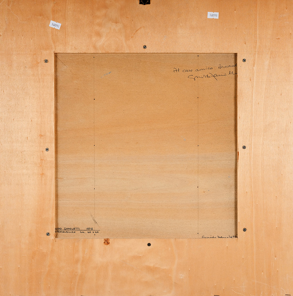 GUIDO ZANOLETTI 1933 - 2014 Senza titolo, 1978 Nitroacrilico su tavola, cm 41 x 41 x 1,5 Firmato e datato sul retro Dedica dell’artista sul retro Prov. Collezione Privata