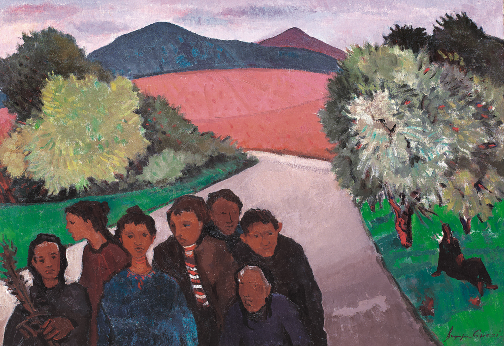 BEPPE GUZZI Genova 23/03/1902 - Roma 1982 Figure lungo la via, 1970 olio su...