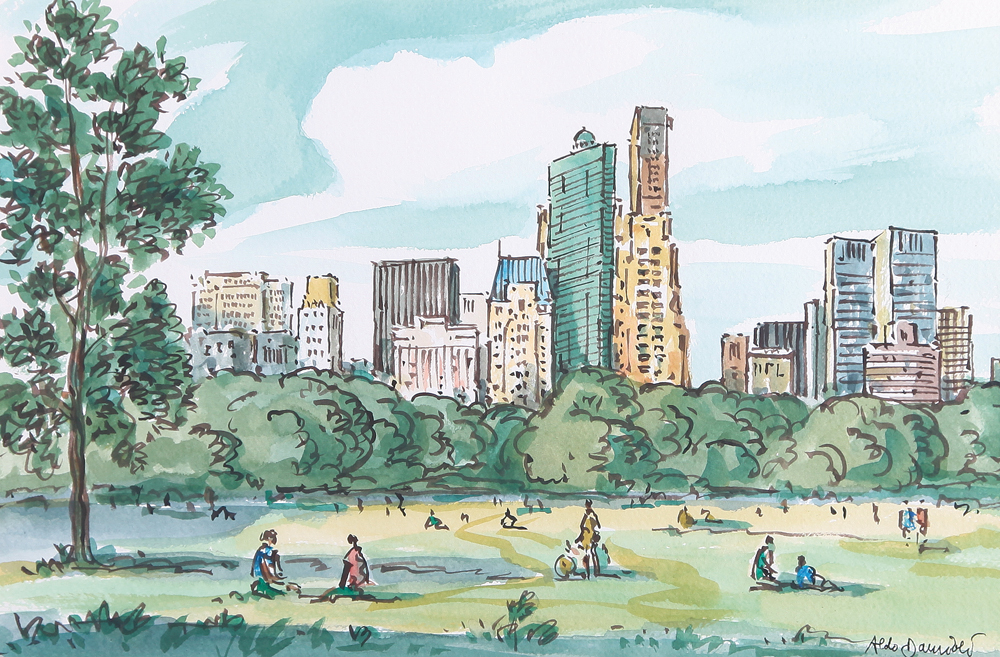 ALDO DAMIOLI Milano 15/02/1952 Giardini acquerello su carta cm. 37x56, firma...