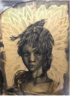Niko D'Accolti malinconici chiarori.’’ pirografia,china e fori su carta...