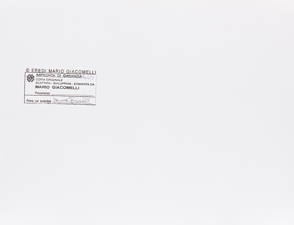 Timbro per autentica Archivio Mario Giacomelli al verso.
