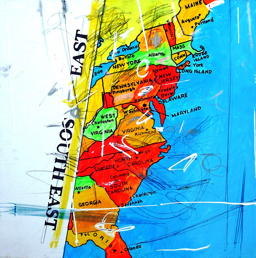 Enrico Manera 1947, Asmara (Eritrea) - [Italia] East Southeast tecnica mista su tela 80x80 cm 2002 firma dell'artista sul retro certificato di autenticità dell’artista su fotografia