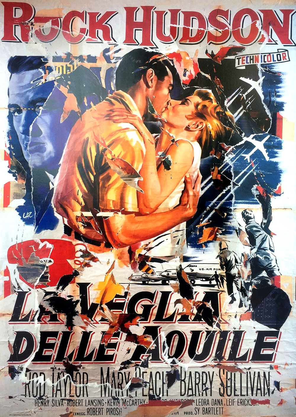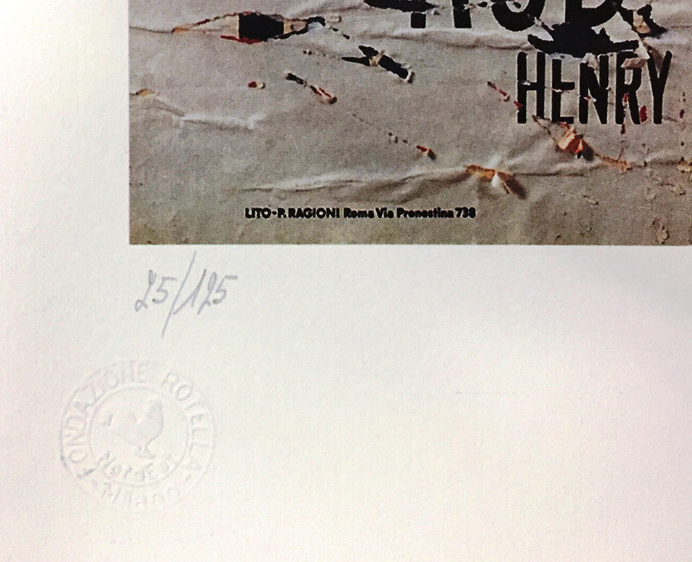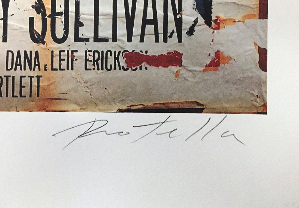 Mimmo Rotella 1918, Catanzaro (Cz) - 2006, Milano (Mi) - [Italia] La veglia delle aquile serigrafia 100x70 cm c. 2000 es. 25/125; firma dell’artista in basso a destra e timbro Fondazione Rotella in basso a sinistra; opera con cornice opera pubblicata su "Mimmo Rotella, multipli décollages", Silvana Ediltoriale certificato di autenticità Picenum