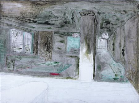PIERLUIGI PUSOLE Torino 22/08/1963 Raiquattro, 1994 tecnica mista su tela cm. 60x80, firma, titolo, anno ed etichette della Galleria Lo Magno (Modica-RG) e dello Studio d'Arte Cannaviello (MI) al retro.