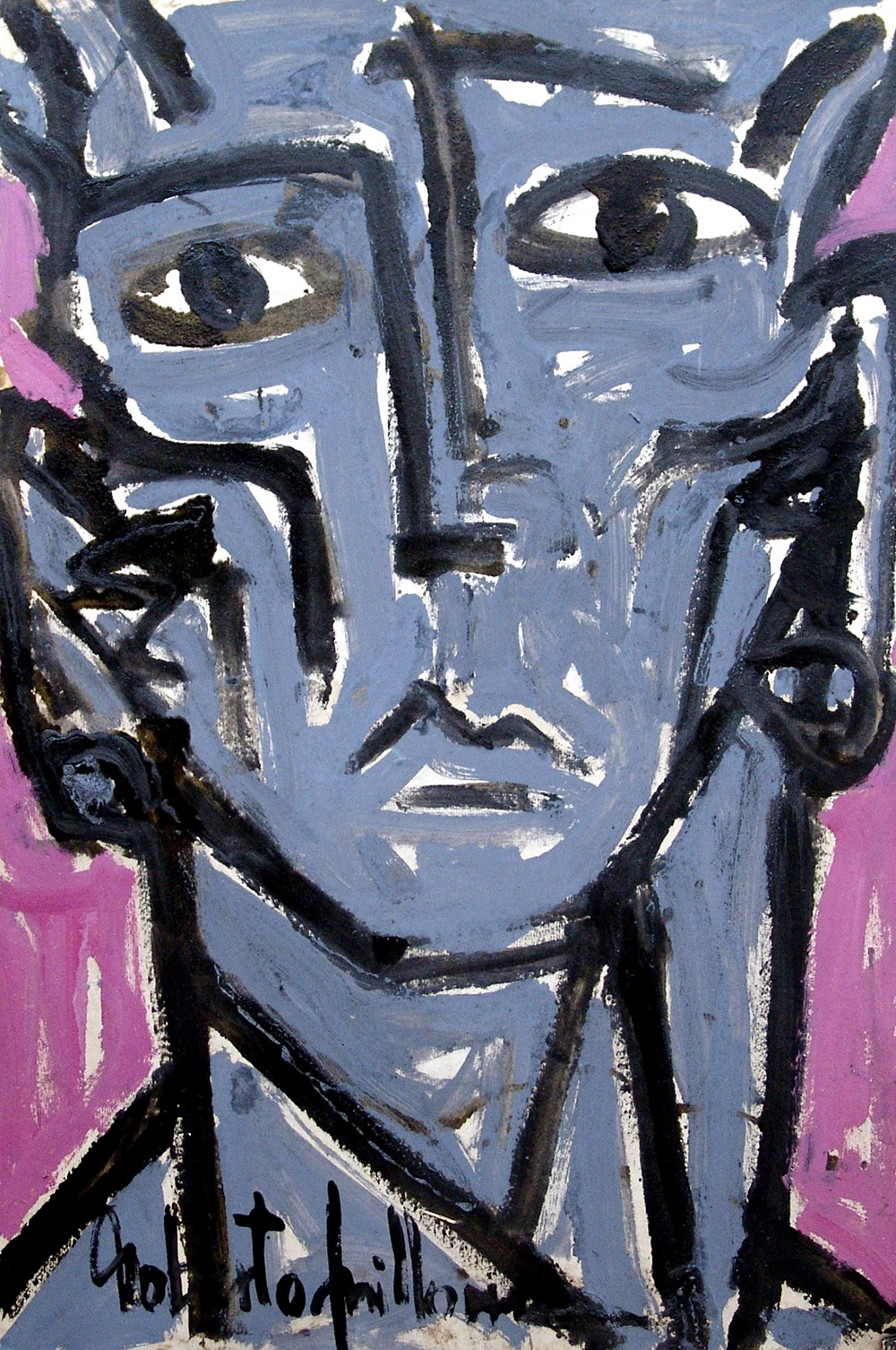 Roberto Grillone 1961, Gela (Cl) - [Italia] Ricomposizione ideale smalto e acrilico su cartone sciupato 87x59 cm 2017 firma dell'artista in basso e sul retro; opera con cornice certificato di autenticità firmato dall'artista