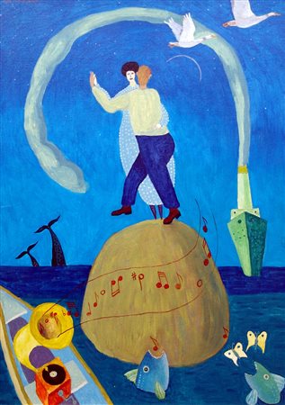 Rinaldo De Carolis 1966, Maglie (Le) - [Italia] La danza della vita olio su tela 70x50 cm 1998 firma dell’artista in alto a sinistra; opera con cornice certificato di autenticità dell’artista su fotografia; certificato di autenticità Farsetti Arte di Prato