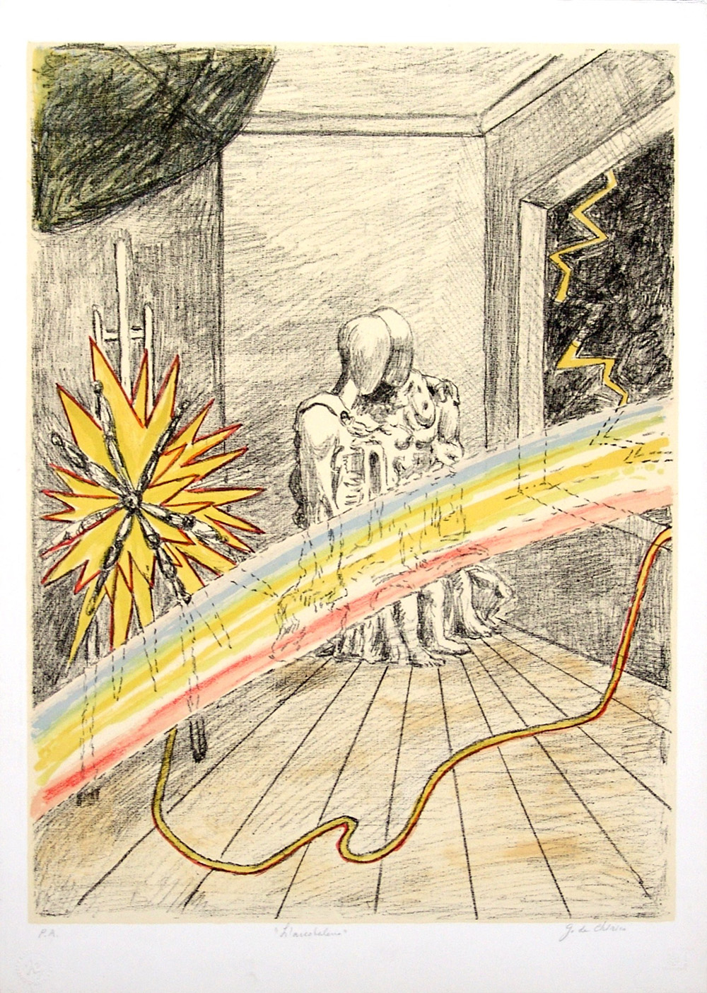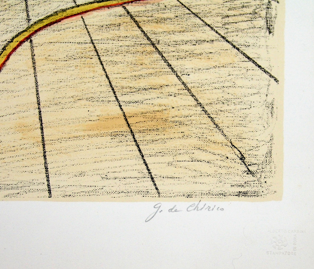 Giorgio De Chirico 1888, Volo (Grecia) - 1978, Roma (Rm) - [Italia] L'arcobaleno litografia 70x50 cm p.d.a.; firma dell'artista in basso a destra; timbro Matteo Maglia in basso a sinistra; timbro Alberto Caprini in basso a destra certificato di autenticità Picenum