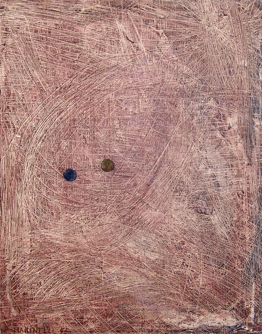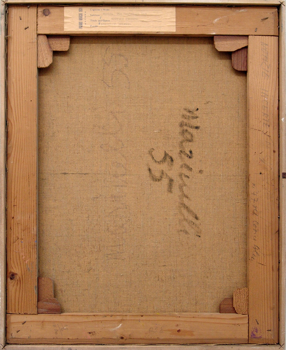Manlio Marinelli 1919, Ancona (An) - 1998, Ancona (An) - [Italia] Notizie incerte tecnica mista su tela 50x40 cm 1955 firma dell’artista in basso a sinistra e sul retro certificato di autenticità Picenum; cartiglio sul retro Premio Marche, Ancona 1964