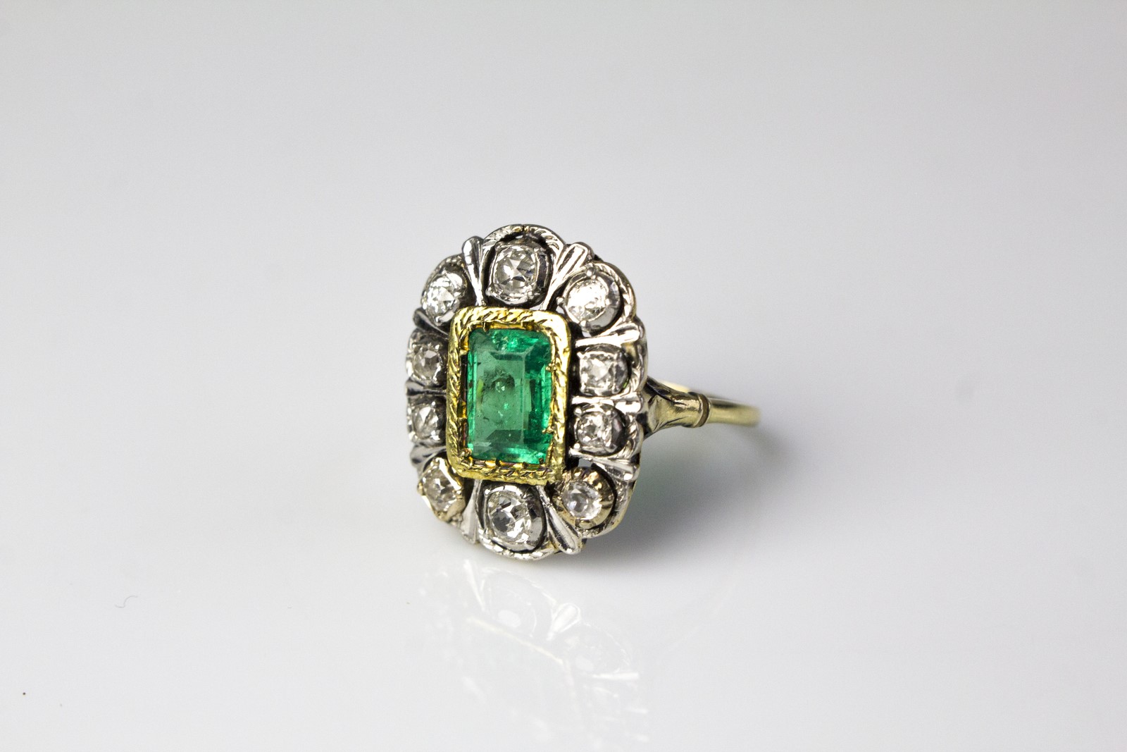 [Nessun Autore] Diamonds and emerald ring . . . Gold ring of 6 total gr with emerald cts 1.15 approx and 12 old cut diamonds cts 0.80